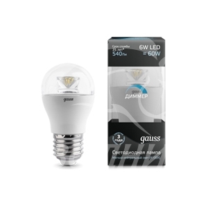 Диммируемая шарообразная светодиодная лампа Gauss 6Вт - разумная замена 60-ватным лампам накаливания в помещениях, где понадобится управления яркостью света с помощью регулятора мощности.