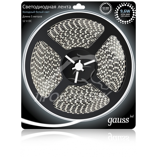 Светодиодные ленты Gauss с холодным белым светом создают индивидуальные интерьерные решения, позволяя сокращать расходы энергии. На каждый метр гибкой ленты приходится 120 светодиодов с суммарной мощностью 9,6Вт, что дает более 600Лм светового потока. Светодиоды не греются, потому не повышают температуру помещения, и служат до 50 тыс. часов, украшая потолки, мебель, ступеньки.