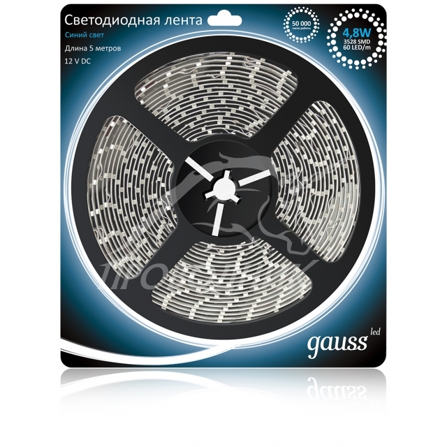 Светодиодная лента Gauss делает интерьерное декоративное освещение доступнее, предлагая свет 60 светодиодов на 1 метр ленты, которая продается в катушке длиной в 5 метров. Декоративные функции ленты широки, так как она имеет самоклеющееся основание, является гибкой и может применяться в любых помещениях с нормальной влажностью.